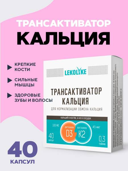 Calcium Transactivator, Osteoporosis Prevention, Vitamin K2, Vitamin D3, Bone Health, Bone Density, Calcium Metabolism, Bone Remodeling, Menopause, Bone Loss, Calcium Supplements, Peak Bone Mass, Blood Vessel Calcification, Joint Health, Musculoskeletal Health, 40 Capsules.