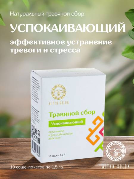 Altyn Solok Calming Herbal Tea offers natural relief from stress, anxiety, insomnia, and nervous tension. This effective herbal blend, packaged in convenient sachets, combines the soothing properties of Motherwort, Lemon Balm, Peppermint, and Hawthorn. It helps alleviate symptoms such as headaches, nervousness, depression, migraines, panic attacks, and promotes better sleep. This potent combination supports a healthy nervous system, boosts immunity, and may even help with post-COVID-19 recovery, including stress, anxiety, and depression. Motherwort and Lemon Balm reduce nervous tension and irritability, while Peppermint's essential oils calm the mind and alleviate migraines. Hawthorn helps normalize heart rhythm and reduces dizziness. Experience the gentle, natural path to relaxation and improved well-being. Suitable for adults only. Not recommended for children under 12, pregnant or breastfeeding women without consulting a doctor. Contains Motherwort, Lemon Balm, Peppermint, and Hawthorn.