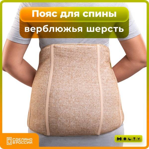Experience soothing relief with our L-size natural camel wool back support belt. Made without synthetic additives or dyes, this belt features an elastic knit base for a comfortable, compressive fit. Internal, 0.5cm thick reinforcing ribs prevent twisting and ensure all-day support. Anatomically designed for superior comfort, this belt stays securely in place without restricting movement. Protecting your lower back from cold and drafts, the belt's unique lanolin content offers antiseptic and anti-inflammatory benefits, providing a gentle massage effect that promotes muscle relaxation. Ideal for post-injury recovery, kidney problems, and chronic lower back pain, this medical-grade belt regulates temperature – keeping you warm in winter and cool in summer. Comes in premium packaging. Unisex design. See size chart for details. Oversized design covers a large portion of the back for optimal warmth and therapeutic microclimate. Put it on easily by pulling it over your head.