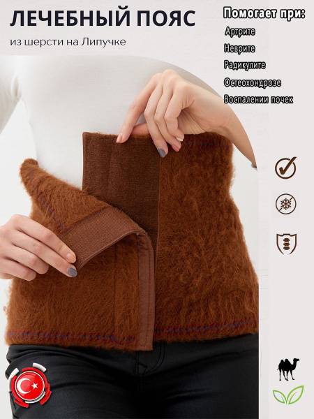 This warming belt helps alleviate back pain associated with muscle strains and conditions such as radiculitis, arthritis, and osteochondrosis. It also offers therapeutic benefits for inflammation. Recommended for back and kidney pain, the camel wool belt promotes vasodilation, stimulating blood flow and improving metabolism.