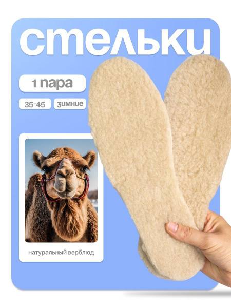 Description: Experience ultimate winter warmth with our 3-layer camel wool insoles. The top layer features luxuriously soft, 100% natural camel hair – known for its superior warmth, durability, and unique thermal properties. Its hollow fibers provide exceptional lightness and insulation, keeping your feet comfortably warm all day long. A layer of durable, heat-retaining felt adds extra comfort and protection, while a final layer of metallic lavsan reflects cold away from your feet. Universal size fits shoe sizes 35-45 (men's and women's). Enjoy superior comfort and warmth this winter.