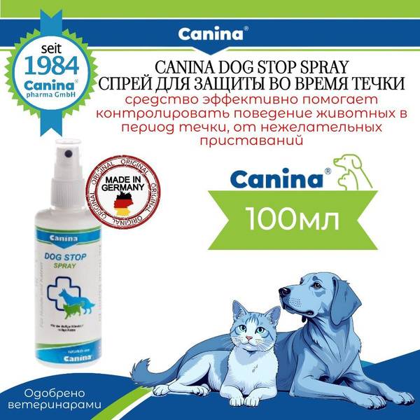 Keywords: Canina Dog Stop Spray, heat cycle spray, dog heat spray, cat heat spray, odor eliminator, pheromone neutralizer, dog pheromone spray, cat pheromone spray, unwanted attention, male dog attraction, dog marking, cat marking, heat cycle odor control, German pet products, premium pet care, Canina, dog vitamins, cat vitamins, dog supplements, cat supplements, pet health, dog dental care, cat dental care, flea shampoo, tick shampoo, dog shampoo, cat shampoo