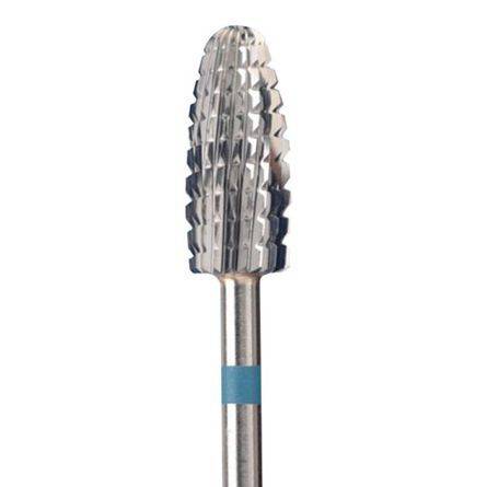 Achieve a flawless manicure with the Carbide Nail Drill Bit (Art. 807301) in a striking blue color. This premium tungsten carbide bit features a medium, cross-cut tooth pattern, expertly designed for efficient and smooth nail care. The rounded cone-shaped working end, measuring 6.0mm in diameter and 14.5mm in length, is ideal for a variety of professional applications.