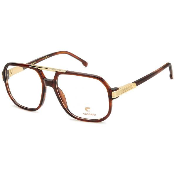 Experience the sophisticated style and robust durability of the Carrera 1134 EX4 men's eyeglasses. These stylish, wide-framed glasses boast a striking brown horn (dark brown with gold accents) finish. The bold, rectangular frame features a double bridge and sleek, straight temples, creating a timeless yet contemporary look. Crafted with meticulous Italian craftsmanship, the elegant geometry of the plastic frame blends classic design with modern sophistication.