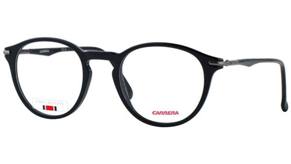 Experience timeless style and unparalleled comfort with the Carrera 284/S 807 eyeglasses. These unisex round frames boast a sophisticated retro design, featuring a keyhole bridge and sleek metallic accents. Crafted from lightweight Italian Light Acetate, these frames weigh a mere 17 grams, ensuring all-day wearability. The integrated flex hinges provide durability and flexibility, while the comfortable, adjustable temples complete the luxurious feel. The glossy black finish, complemented by grey metallic details, adds a touch of modern elegance. Includes an official Carrera case and cleaning cloth. Certified in UK. One-year manufacturer's warranty by Safilo S.p.A., Italy. Frame width: 135mm (interior).