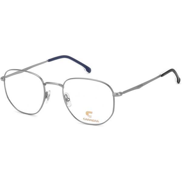 Elevate your eyewear game with the Carrera 323 R80 sunglasses, a sophisticated blend of classic style and modern design. These lightweight unisex frames (only 15 grams!) offer unparalleled comfort without compromising on quality. The meticulously crafted design features a matte dark ruthenium metal frame in a flattering round shape, accented by eye-catching blue and white temple tips made from high-quality, durable plastic. This striking contrast adds a touch of modern flair to the timeless round silhouette.