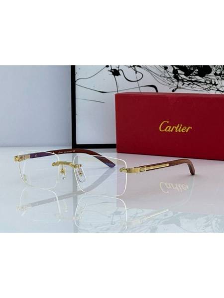 <img src="placeholder.jpg" alt="Cartier CT0490O Rimless Glasses with Wooden Temples">
