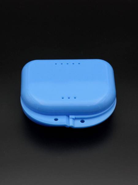 High-quality dental storage case with a secure latch and ventilation holes. Perfect for storing and protecting orthodontic retainers, aligners, mouthguards, and similar dental appliances. Ensures hygiene and prolongs the lifespan of your dental devices.