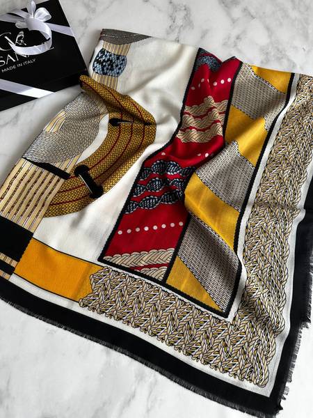 cashmere shawl, silk shawl, Italian shawl, luxury shawl, women's shawl, large shawl, gift shawl, abstract print shawl, warm shawl, versatile shawl, cashmere scarf, silk scarf, Casanave, hypoallergenic shawl, 140x140cm shawl, black shawl, beige shawl, orange shawl, modal shawl, winter shawl, summer shawl, autumn shawl, spring shawl, gift ideas for women, Italian fashion, luxury accessories, handmade shawl