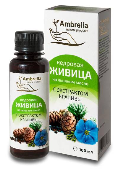 Siberian cedar resin, flaxseed oil, nettle extract, natural remedy, herbal supplement, liver support, anti-inflammatory, immune system, detoxification, omega-3, omega-6, omega-9, vitamins, minerals, antiseptic, anti-ulcer, hepatoprotective, anti-sclerotic, chronic fatigue, Siberian cedar, flax oil, nettle, health supplement, natural health, 100ml, OOO "Ambrella"