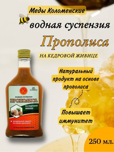 Keywords: Propolis, Siberian Pine Resin, Water Suspension, Immune Support, Anti-inflammatory, Wound Healing, Natural Remedy, Herbal Supplement, 250ml, Internal Use, External Use, Health Supplement, Immunity Booster, Cold Remedy