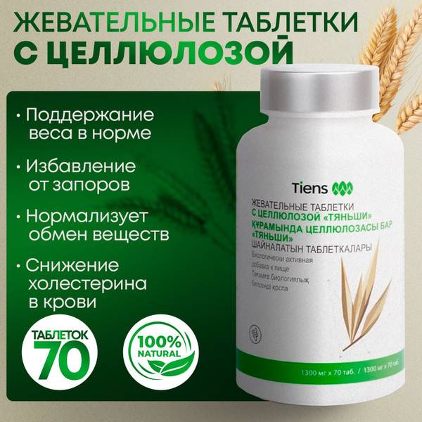 Description: Our chewable cellulose tablets combine soluble and insoluble dietary fibers to promote healthy digestion. They help normalize bowel movements, reduce transit time, and cleanse the digestive tract of harmful substances and toxins. This supports gut health, preventing dysbiosis, improving nutrient absorption, and contributing to lower cholesterol levels. Ideal for those who consume excessive processed foods or high-fat diets.