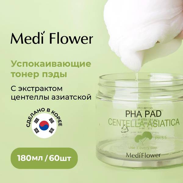 Description: Experience the soothing power of Medi Flower Centella Asiatica Calming Facial Toner Pads. Infused with 60% Centella Asiatica extract, these gentle exfoliating pads effectively calm and soften sensitive skin, providing all-day comfort. PHA acids gently exfoliate, balancing sebum production for smoother, brighter skin. Aloe vera, and a blend of botanical extracts, deliver deep hydration and nourishment, while ginseng and oligopeptides revitalize tired skin, leaving it silky soft. The pH 5.5 formula, coupled with dual-sided pads, ensures a gentle yet effective exfoliation for improved skin texture. Perfect for sensitive skin.