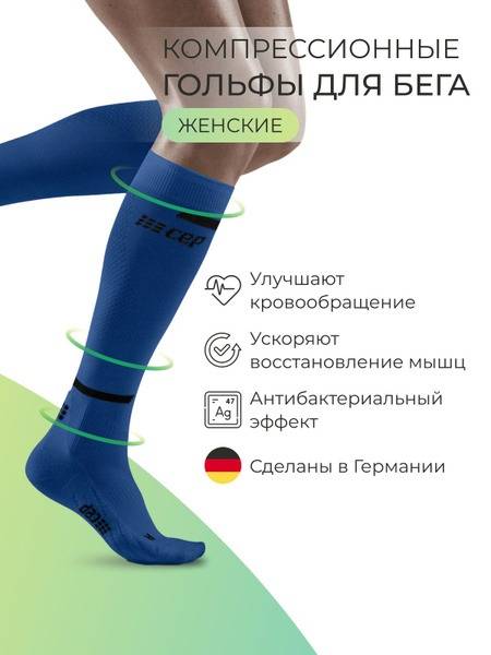 Description: Elevate your athletic performance with CEP Compression Socks for women. These innovative socks feature graduated compression, decreasing from the ankle to the calf, to optimize muscle tone, improve blood circulation, and enhance nutrient delivery to your feet and calves. Experience enhanced power and lightness in your legs.