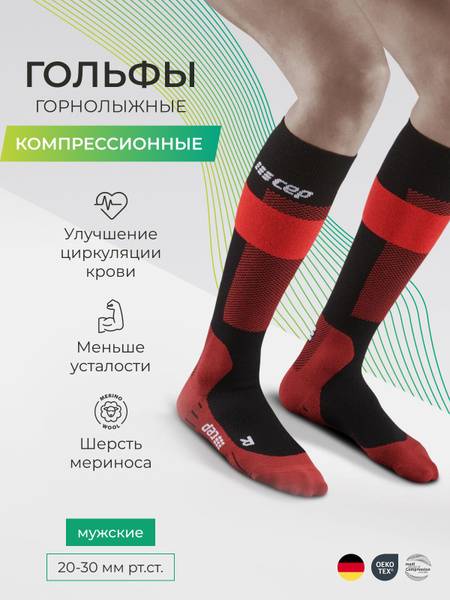 Conquer the slopes in comfort and style with CEP's red merino wool compression ski socks. Designed for skiers and snowboarders, these socks offer unparalleled warmth and performance. The blend of premium merino wool and high-tech synthetic fibers provides superior climate control, keeping your feet dry and warm even during the longest runs. Gentle 0-class compression enhances blood flow, delivering oxygen and nutrients to your muscles, reducing fatigue and improving coordination. Features include: