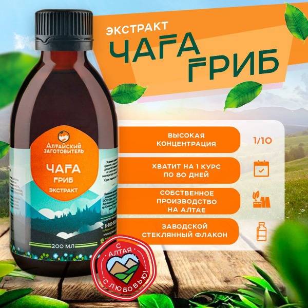 Altai Harvester presents a premium 200ml extract of natural birch chaga, sourced and produced in the ecologically rich Altai region of Russia. This convenient and affordable bottle delivers a potent concentration of chaga's beneficial properties, making it a versatile addition to your health regimen.