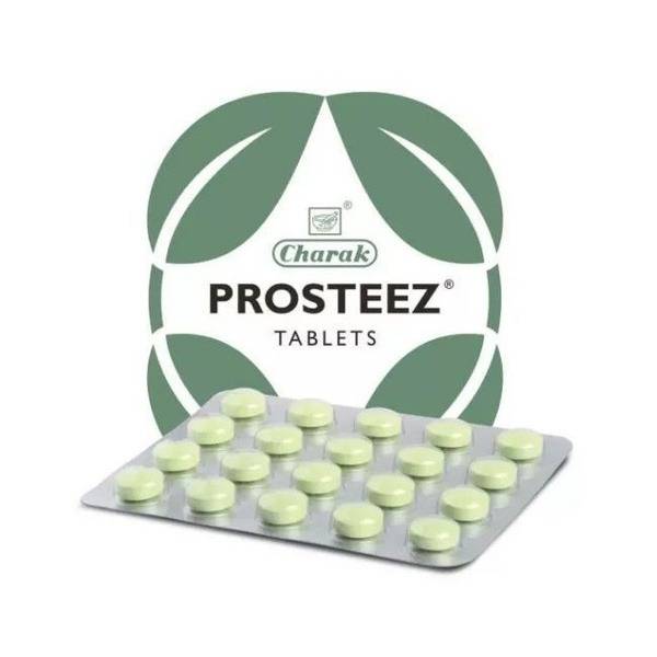 Charak Prosteez is a comprehensive Ayurvedic herbal and mineral supplement formulated to support men's urinary and reproductive health. Specifically designed to address the symptoms of benign prostatic hyperplasia (BPH) – also known as an enlarged prostate – and cystitis, Prosteez helps reduce prostate size, alleviate inflammation in the urinary tract, and relieve pain, urinary retention, incomplete bladder emptying, and urinary dribbling. This 20-tablet pack provides natural prostate support for improved urinary function and overall well-being.