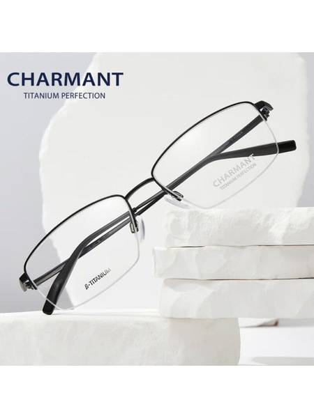 Experience sophisticated style with Charmant CH29520 half-rim eyeglasses. Crafted from lightweight, durable titanium alloy, these frames offer exceptional comfort and a professional look, perfect for the modern business professional. (Size: 57-17-145)