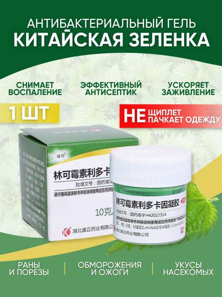 LinKameisu Chinese Green Antibacterial Gel offers potent healing, soothing, softening, antiseptic, bacteriostatic, and local anesthetic properties. This 10g gel effectively combats bacterial skin infections caused by sensitive microorganisms, particularly Staphylococcus and Streptococcus, including penicillin-resistant strains. Ideal for treating: sepsis, post-surgical infections, wound infections, skin and soft tissue infections (pyoderma, furunculosis, phlegmon, erysipelas), burns (including sunburn), bites, contact dermatitis (including plant-induced), minor wounds (scratches), herpes, and frostbite. Simply apply a thin layer to the affected area and allow to dry. Repeat twice daily as needed. Contraindicated in individuals with hypersensitivity, during pregnancy and lactation, and in infants under one month old. Use with caution for fungal skin infections.