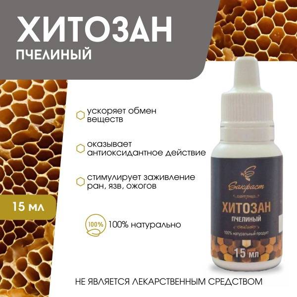 - Chitosan (from bee products): Known for its ability to help eliminate excess chlorine, sodium, alcohol, nicotine, drug residues, synthetic dyes, preservatives, salts, and heavy metals (lead, mercury, cadmium, etc.) from the body. It also supports healthy bowel function, accelerates wound and burn healing without scarring, aids in cartilage tissue regeneration, restores the gastrointestinal mucosa, reduces the absorption of fats and carbohydrates, and activates enzymatic detoxification processes.