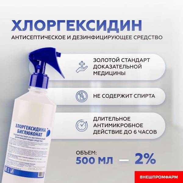 This 2% (aqueous) Chlorhexidine Bigluconate solution is a high-concentration antiseptic and disinfectant, effective against bacteria, fungi, and viruses on skin and surfaces. Unlike standard 0.05% and 0.1% solutions, its high concentration targets both Gram-positive and Gram-negative bacteria, exhibiting virucidal and fungicidal properties. Highly sought after in medical settings, this hand and surface antiseptic is proven effective. International randomized studies show it's a gold standard for skin disinfection in long-term care patients within palliative care, ICU, and surgical units. This is due to its: 1) prolonged antiseptic action (6 hours), 2) low risk of allergic reactions, and 3) high efficacy against bacteria and viruses. This disinfectant solution, for use on rooms, instruments, and skin, reduces infections caused by resistant microorganisms (MRSA and VRE) by 23%. Widely used in Russian and international clinics, beauty salons, nail salons, and tattoo studios for skin disinfection and treatment of instruments and equipment unsuitable for heat sterilization. Chlorhexidine 2% also finds extensive application in veterinary disinfection.