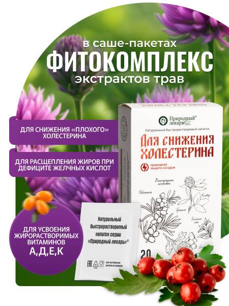 Keywords: Cholesterol, lower cholesterol, phytocomplex, herbal supplement, sea buckthorn, green tea, clover, buckwheat, hawthorn, grape seed, cardiovascular health, blood pressure, heart health, atherosclerosis, natural remedy, dietary supplement, 20 sachets, 2g sachets, Phytokom Altai.