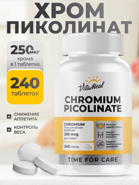 VitaMeal Chromium Picolinate 250mcg tablets provide a potent source of chromium picolinate to support healthy weight management and appetite control. Chromium is an essential trace mineral that plays a vital role in several key metabolic processes: