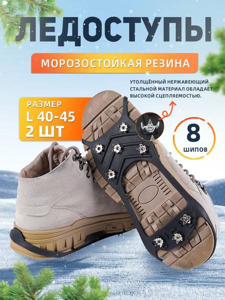 Keywords: Ice grips, ice cleats, snow grips, winter grips, shoe spikes, anti-slip grips, ice traction, snow traction, winter safety, outdoor gear, walking grips, running grips, ice fishing gear, hunting gear, shoe size L, size 41-45, durable, lightweight, comfortable, stainless steel, natural rubber, cold weather gear.