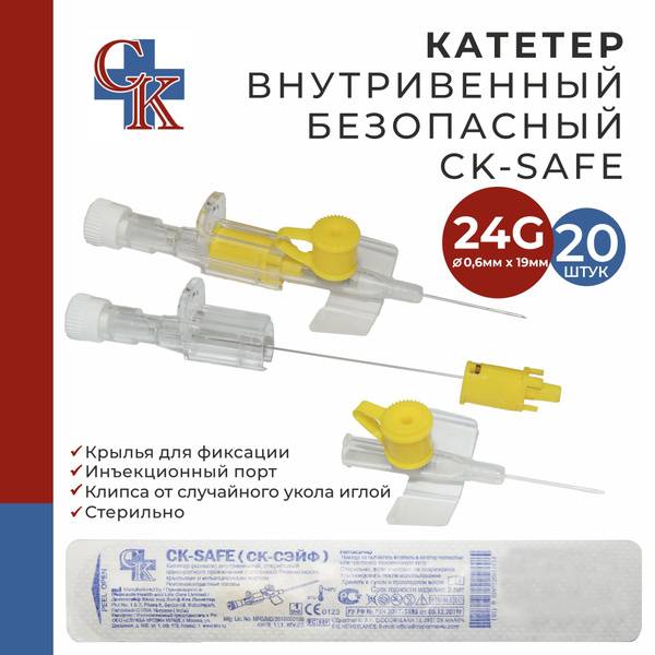 Ensure safe and efficient intravenous access with the CK-SAFE (СК-СЭЙФ) 24G x 19mm IV catheter. Designed for superior patient comfort and ease of use for medical professionals, this catheter incorporates several key features: