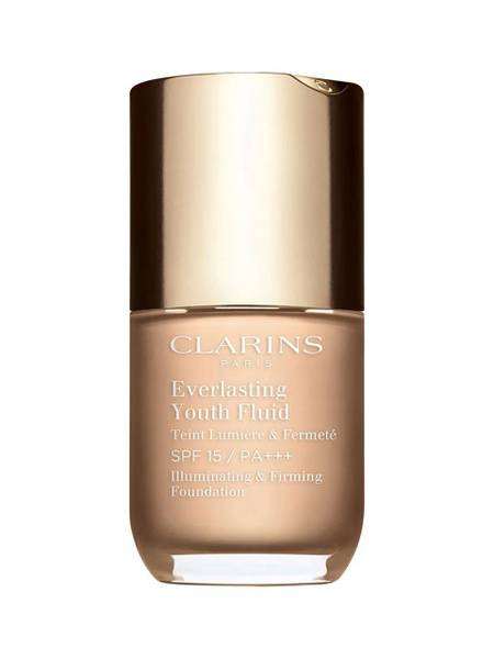 Achieve a youthful, radiant complexion with Clarins Everlasting Youth Fluid Foundation SPF 15. This lightweight, melt-in texture seamlessly evens skin tone, concealing imperfections and pigmentation for a flawless finish. Infused with chicory and Jania Rubens red algae extracts, and Skin Tone Optimizing pigments, it delivers all-day radiance and a naturally luminous glow. Oat polysaccharides provide an immediate lifting effect, smoothing the skin for a visibly younger appearance, instantly and over time. Experience the benefits of: