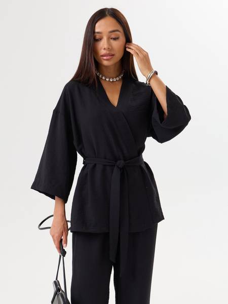 Elevate your wardrobe with the Full Grace Classic Women's Pantsuit. This chic, black two-piece ensemble embodies effortless style and unparalleled comfort. Designed in a relaxed, pajama-inspired silhouette, the suit features a flowing, belted kimono jacket and wide-leg palazzo pants. Crafted from a luxurious, wrinkle-resistant fabric with a subtle texture, this breathable material ensures all-day comfort without compromising style.