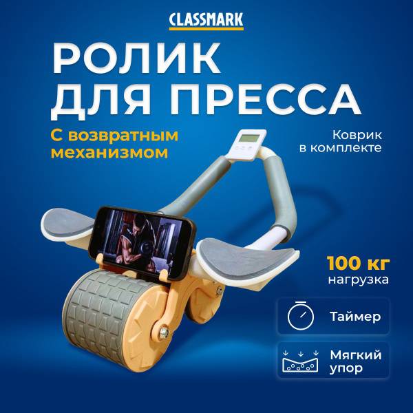 Introducing the Classmark Ab Roller with Reverse Mechanism – a revolutionary fitness tool for men and women to strengthen their core, arms, legs, and back. This compact (39x22.5cm) and durable iron and polypropylene ab roller supports up to 100kg, making it ideal for both beginners and advanced athletes. The innovative reverse mechanism assists you back to the starting position, significantly improving workout efficiency and reducing strain compared to standard ab rollers. Enjoy comfortable workouts with padded handles and maintain perfect form. This complete fitness package includes a convenient exercise mat (34x17cm) for comfort and floor protection, plus a built-in electronic timer to track your workout progress. Achieve your fitness goals with the Classmark Ab Roller – tone your abs, strengthen your core, and sculpt your entire physique.