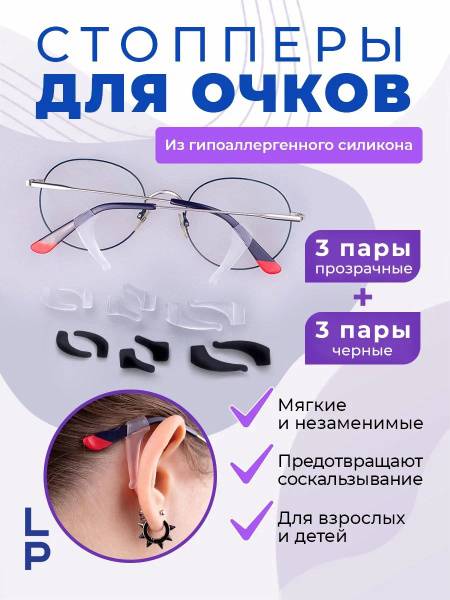 Prevent eyeglasses from slipping with this 6-pair set of silicone eyeglass retainers – 3 clear and 3 black pairs in varying sizes. These discreet, curved silicone grips provide a secure and comfortable fit for all types of eyewear, including prescription glasses, sunglasses, and sports eyewear. Made from hypoallergenic, soft silicone, these retainers are sweat-resistant, heat-resistant, and won't irritate your skin. Enjoy worry-free wear, even during physical activity, without the need for uncomfortable eyeglass straps or cords. Simply slide the retainers onto your temples and adjust for a perfect fit (applying a drop of water or lotion may help). Say goodbye to constantly adjusting your glasses – these small but mighty retainers keep your eyewear securely in place all day long, for adults and children alike.