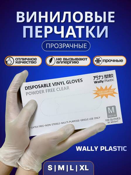 Get 100 high-quality, clear, disposable vinyl gloves from Wally Plastic. This bulk pack (50 pairs) of powder-free gloves in size Medium offers superior comfort and flexibility for both men and women. Made from 100% polyvinyl chloride (PVC), these gloves feature a wide cuff for a secure fit and are designed for extended wear. Their hypoallergenic nature and lack of powder minimize the risk of allergic reactions and skin irritation. Experience the difference of durable, comfortable, and reliable protection with Wally Plastic vinyl gloves. Also available in sizes Small and Large.