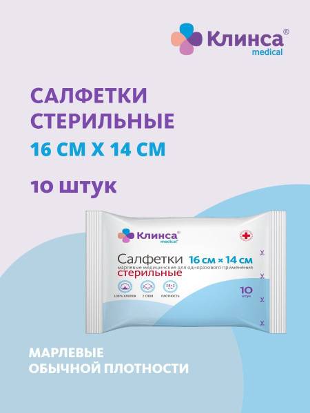 High-quality, sterile, single-use medical gauze sponges from KLINSA. Each 2-ply sponge measures 16cm x 14cm and boasts a density of 28g/m². Made from 100% chlorine-free bleached cotton, these sponges are packaged in convenient 10-count packs for optimal hygiene and convenience. Ideal for medical professionals and first aid applications.