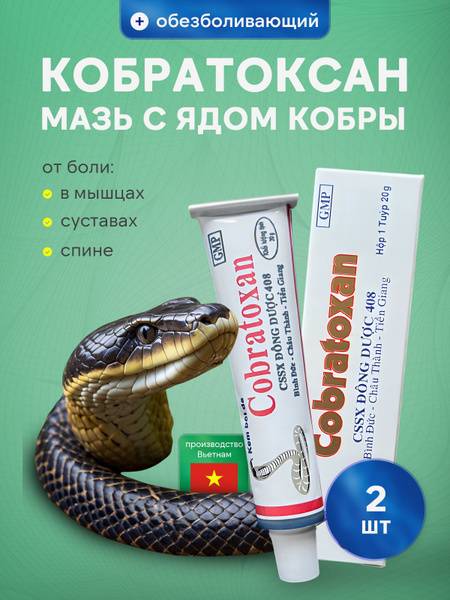 Cobratoxan, cobra venom ointment, pain relief ointment, joint pain relief, muscle pain relief, arthritis pain relief, arthrosis pain relief, Vietnamese pain relief, natural pain relief, anti-inflammatory ointment, analgesic ointment, sciatica pain relief, muscle inflammation, meniscus tear pain, osteochondrosis pain, menthol ointment, salicylic acid ointment, 2 pack, buy Cobratoxan.
