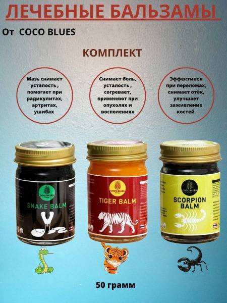 Experience the potent healing power of Thailand with the Coco Blues Traditional Thai Balm Trio. This set includes three 50g jars of authentic balms: Snake, Tiger, and Scorpion, each formulated with a unique blend of traditional herbs and natural oils to target various aches and pains.