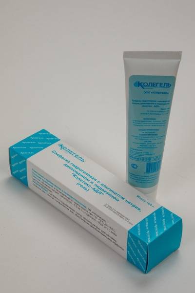 Coletex-ADL, hydrogel, wound healing, pain relief, infected wounds, purulent wounds, aseptic wounds, trophic ulcers, burns, sunburns, anal fissures, perineal wounds, post-surgical wounds, radiation therapy, proctology, urology, gynecology, sodium alginate, dioxidine, lidocaine, wound dressing, medical dressing.