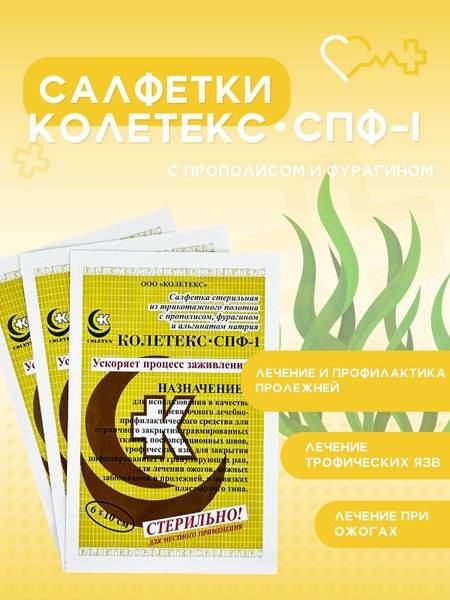 Coletex-SPF-1 Medical Wound Dressings: Propolis & Furagin for Pressure Sores, Ulcers, Burns & More