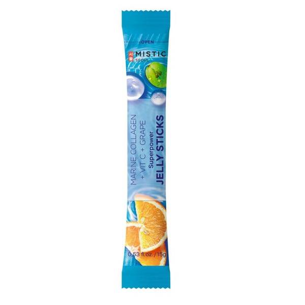 Description: Experience the beauty benefits of MISTIC Jelly Sticks. These convenient single-serve packs deliver easily digestible marine collagen to support skin elasticity, hair, nail, and joint health. A natural green grape concentrate provides a boost of vitamins and antioxidants, while Vitamin C supports your immune system. Naturally enriched with prebiotics and dietary fiber, these low-calorie, delicious grape-flavored sticks offer a simple way to enhance your well-being and beauty routine.
