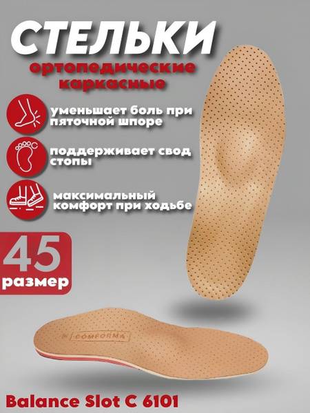 Comforma, BALANCE SLOT C 6101, orthotic insoles, heel spurs, plantar fasciitis, arch support, foot pain relief, flat feet, men's insoles, size 45, foot care, comfort insoles, EVA insole, genuine leather insoles, orthopedic insoles, foot health, pain relief insoles, shock absorbing insoles, post-operative recovery, chronic venous insufficiency.