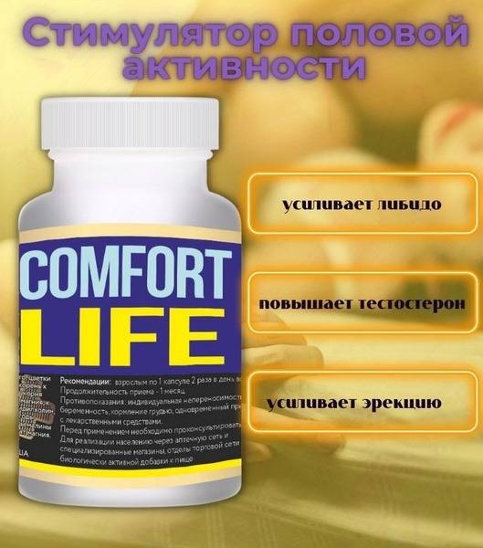 COMFORT LIFE Capsules are a natural supplement designed to enhance your sexual well-being. Formulated with potent natural ingredients, these capsules help improve potency, stimulate sexual activity, and increase testosterone levels. Experience enhanced erections, longer-lasting intimacy, and more intense orgasms. Ideal for men seeking to revitalize their sex life and overcome issues like erectile dysfunction and low libido. COMFORT LIFE is non-habit-forming and promotes improved energy levels and overall well-being. Rediscover your sexual confidence with COMFORT LIFE.