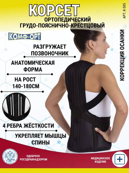 orthopedic corset, back brace, lumbar support, thoracic support, sacral support, posture corrector, back pain relief, osteochondrosis, spondylosis, spondylolisthesis, post-surgical recovery, spinal injury, size XL3, Comf-ORT K505, pain relief, back brace support, spinal support, posture correction, back pain, lumbago, sciatica, ergonomic support, posture improvement.
