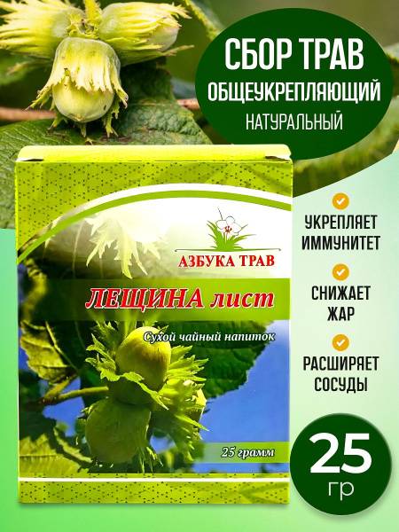 The plant possesses astringent, anti-dysenteric, antipyretic, vasodilating, laxative, antiseptic, stimulating, and tonic actions on the human body. The nuts have immunostimulating and galactagogue (promote milk production in nursing women) effects, and are beneficial for people with diabetes, hypertension, and atherosclerosis. They are an effective means of stimulating intestinal motor function. Used for the prevention of intestinal diseases, anemia, avitaminosis, and rickets. A decoction is used for hypertension, kidney disease, and urolithiasis. Dosage: Boil 20g of raw material in 400ml for 10 minutes, steep for 4 hours, strain. Take 1/2 cup 2 times a day. Contraindications: Individual intolerance. Method of application: Boil 20g of raw material in 400ml for 10 minutes, steep for 4 hours, strain. Take 1/2 cup 2 times a day. Not a medicinal product. It is recommended to consult a doctor before use. Composition: Hazel leaf - 100%. Package: 25 grams of hazel leaf in individual packaging.
