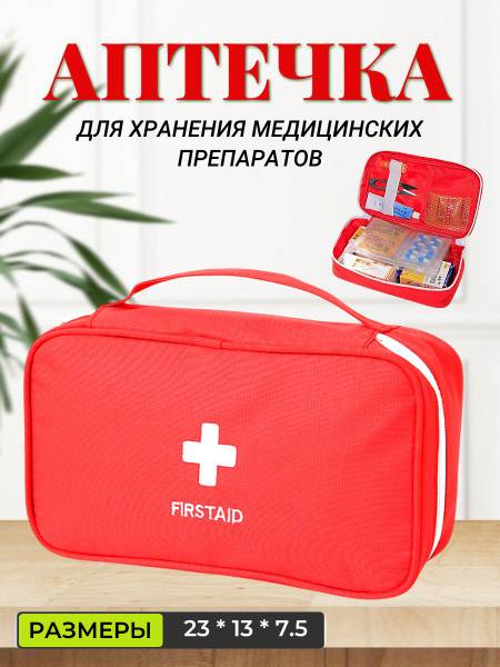 This compact (23cm x 13cm x 7.5cm) textile travel first-aid kit is perfect for home and on-the-go use. Keep essential medications, bandages, and other first-aid supplies readily accessible in your car, home, or while traveling. Its convenient design features a single main compartment and additional pockets on the lid, all securely closed with a zipper. This lightweight organizer keeps your medical supplies neatly organized and takes up minimal space in your luggage, making it an indispensable companion for any journey.