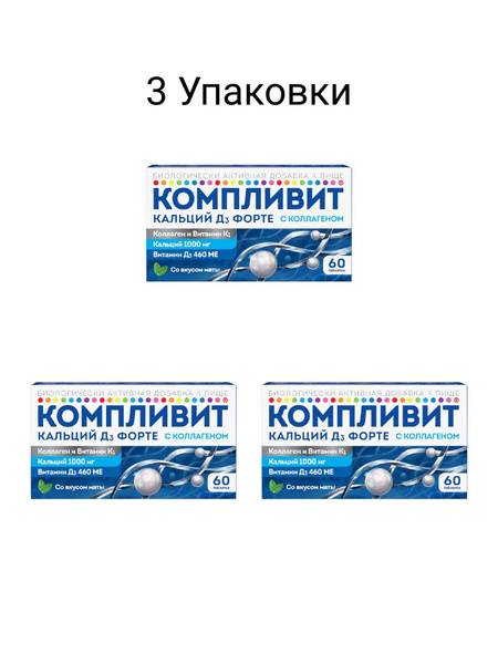 Title: Complivite Calcium D3 Forte with Collagen - 3 Packs of 60 Chewable Tablets (1800mg/tablet, Mint Flavor)