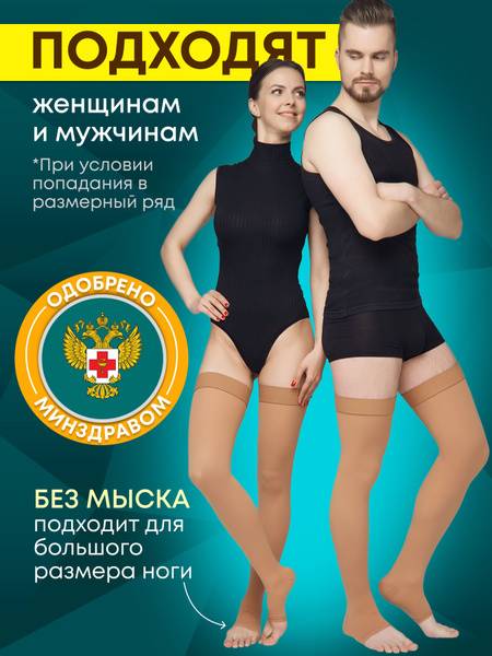 These beige, Class 2 compression stockings from POLZA are designed for effective prophylaxis against deep vein thrombosis (DVT) and thromboembolic complications. Ideal for patients recovering from surgery (surgical, trauma, gynecological), those with prolonged bed rest, and in the early stages of rehabilitation after varicose vein treatment (phlebectomy, sclerotherapy).