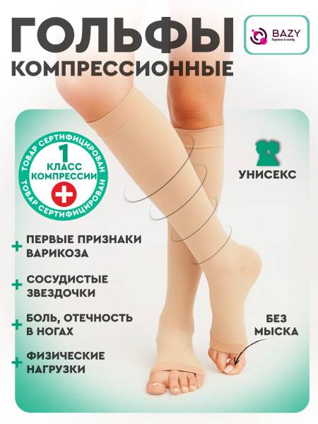 Experience superior comfort and support with BAZY compression socks. Designed for both men and women, these Class 1 compression socks improve circulation, reduce swelling, and alleviate discomfort associated with varicose veins, pregnancy, and long periods of standing or travel. Perfect for everyday wear, athletic activities, or pregnancy, our beige socks offer gentle compression to promote healthy leg circulation. Available in a convenient one-pair pack, these knee-high socks are also ideal for preventing discomfort during long flights or journeys. Choose BAZY for superior quality and noticeable relief from tired, achy legs. For stronger compression, explore our range of Class 2 compression socks.