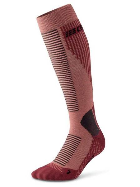 Experience ultimate comfort and performance on the slopes with CEP C261 Ski Tour Compression Socks for women. Designed for size 34-37, these socks combine the warmth and breathability of a merino wool and synthetic fiber blend with the performance benefits of graduated compression. Merino wool's natural antibacterial properties, enhanced by silver ion treatment, keep feet dry and odor-free, while the lightweight compression boosts blood flow, delivering essential nutrients to muscles and accelerating lactate removal. This reduces muscle fatigue and enhances performance, leaving your legs feeling lighter and stronger. Added features include strategically placed cushioning for superior comfort and protection against chafing, a non-slip sole for improved grip within your ski boot, and anatomical shaping for a perfect fit that prevents bunching and blisters. Enjoy enhanced stability, reduced muscle vibration, and improved proprioception for a more confident and controlled ski experience. These socks are ideal for all-day wear, providing optimal comfort and support throughout your ski tour.