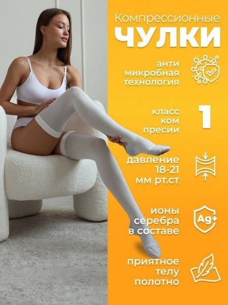 Optimized Description: Experience superior comfort and support with our high-quality Class 1 compression stockings. Designed for both men and women, these white stockings offer effective relief and prevention of varicose veins, chronic venous insufficiency, thrombophlebitis, and post-thrombotic syndrome. Made with hypoallergenic materials for sensitive skin, they ensure comfortable, all-day wear.
